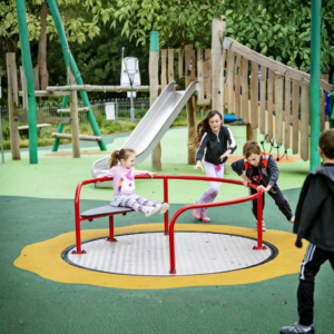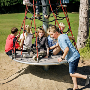 Safe, accessible carousels and spin units provide vestibular stimulation and balance development, while promoting joyful play for groups.